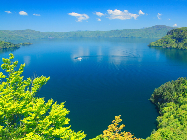 从游览船可欣赏展现四季各异美景的十和田湖,夏季的新绿以及秋季红叶装点的群山,交错复杂的半岛,以及陡峭的悬崖等。
